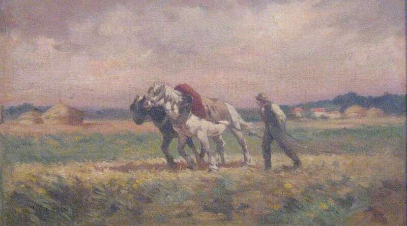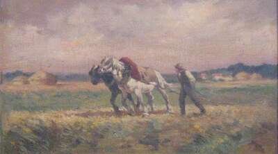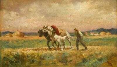 JEAN CHARLES CAZIN (FRENCH 1841-1901) "TILLING THE FIELDS"