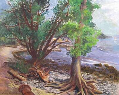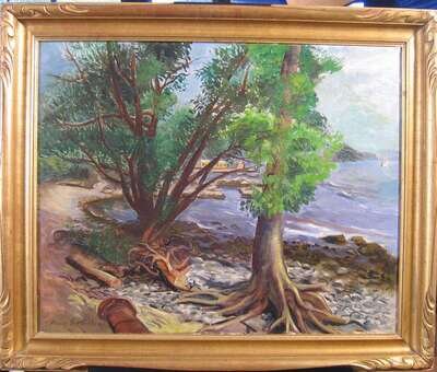 HARRY GOTTLIEB (AMERICAN 1895-1993) RIVERBANK WITH TREES