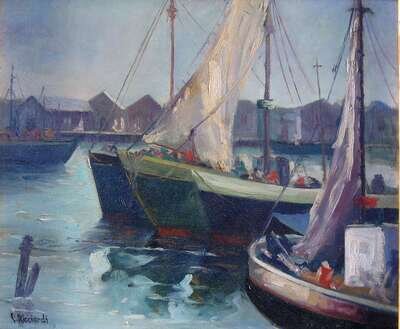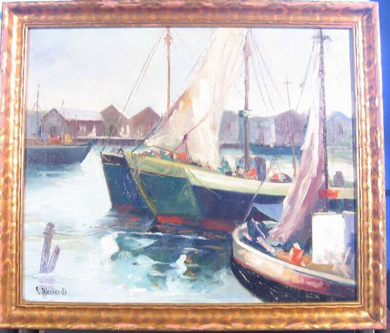 CEASARE A. RICCIARDI (AMERICAN 1892-1973) BOATS IN HARBOR