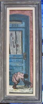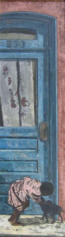 THOMAS YERXA (AMERICAN B. 1923) CHILD WITH PUPPY