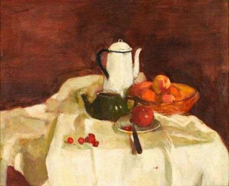 SEYMOUR REMENICK (AMERICAN 1923-1999) STILL LIFE WITH FRUIT, CREAMER AND COFFEE POT
