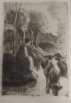 CAMILLE PISSARRO (FRENCH 1830-1903) "VACHERE AU BORD DE L'EAU"FROM "GAZETTE DES BEAUX-ARTS"