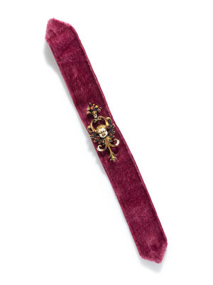 Depicting a grotesque designed face decorated in enamel. Yellow gold. 1 1/4 inches x 1/4 inch.
