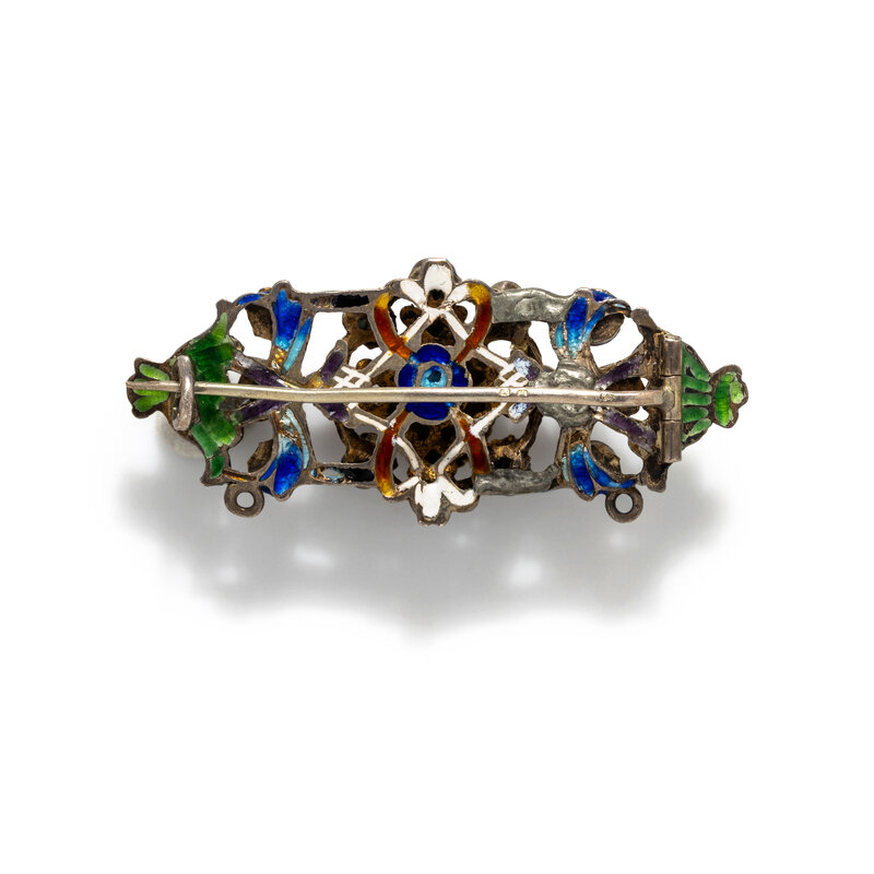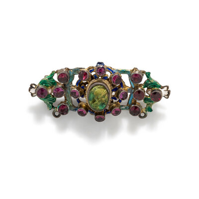 AUSTRO-HUNGARIAN, ANTIQUE, MULTIGEM AND ENAMEL BROOCH