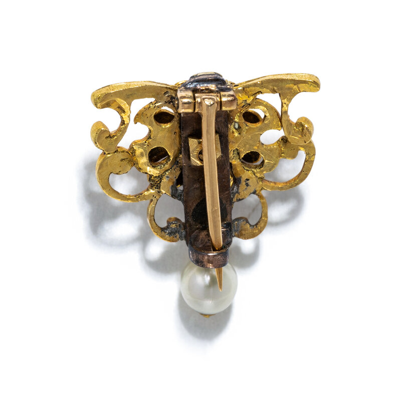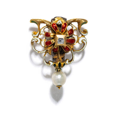 ANTIQUE, RENAISSANCE STYLE, DIAMOND AND PEARL BROOCH