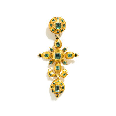GEORGIAN, YELLOW GOLD AND EMERALD PENDANT