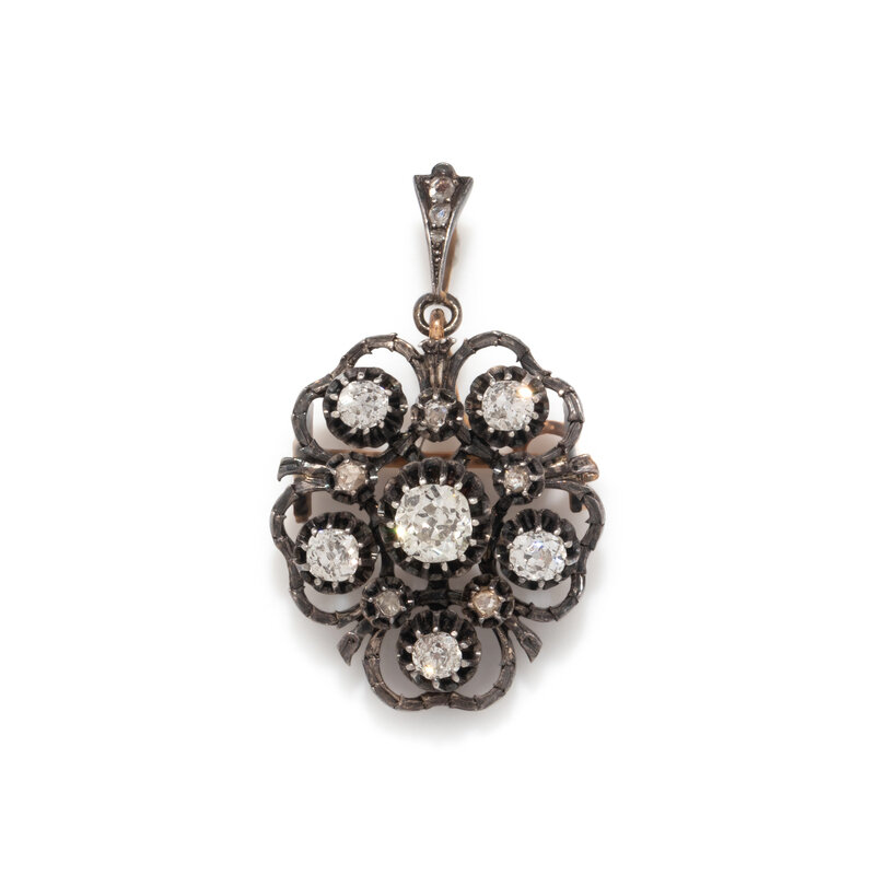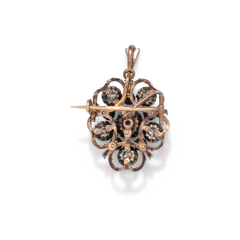 SILVER-TOPPED GOLD AND DIAMOND PENDANT/BROOCH