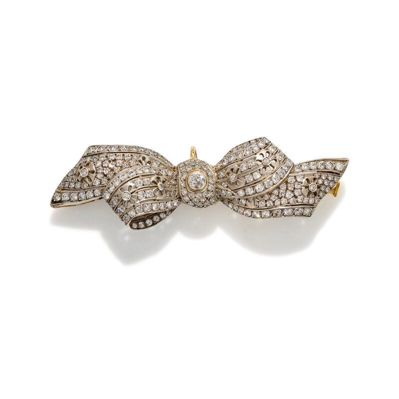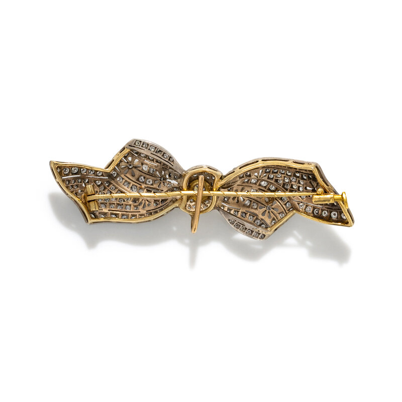 ANTIQUE, SILVER-TOPPED GOLD AND DIAMOND BOW BROOCH/PENDANT