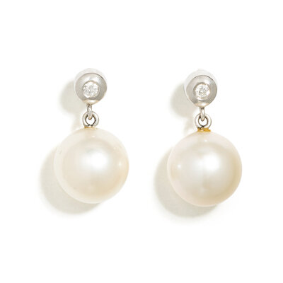 CULTURED SOUTH SEA PEARL AND DIAMOND EARRINGS