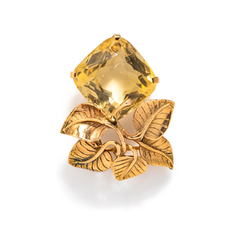SEAMAN SCHEPPS, YELLOW GOLD AND CITRINE BROOCH