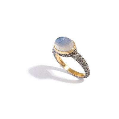 MOONSTONE AND DIAMOND RING