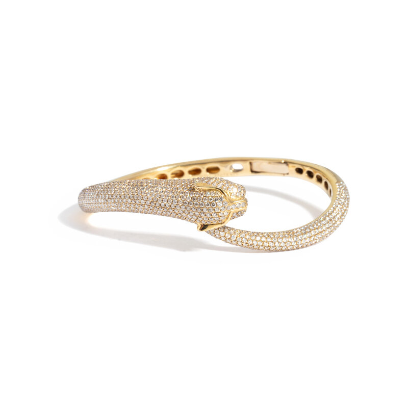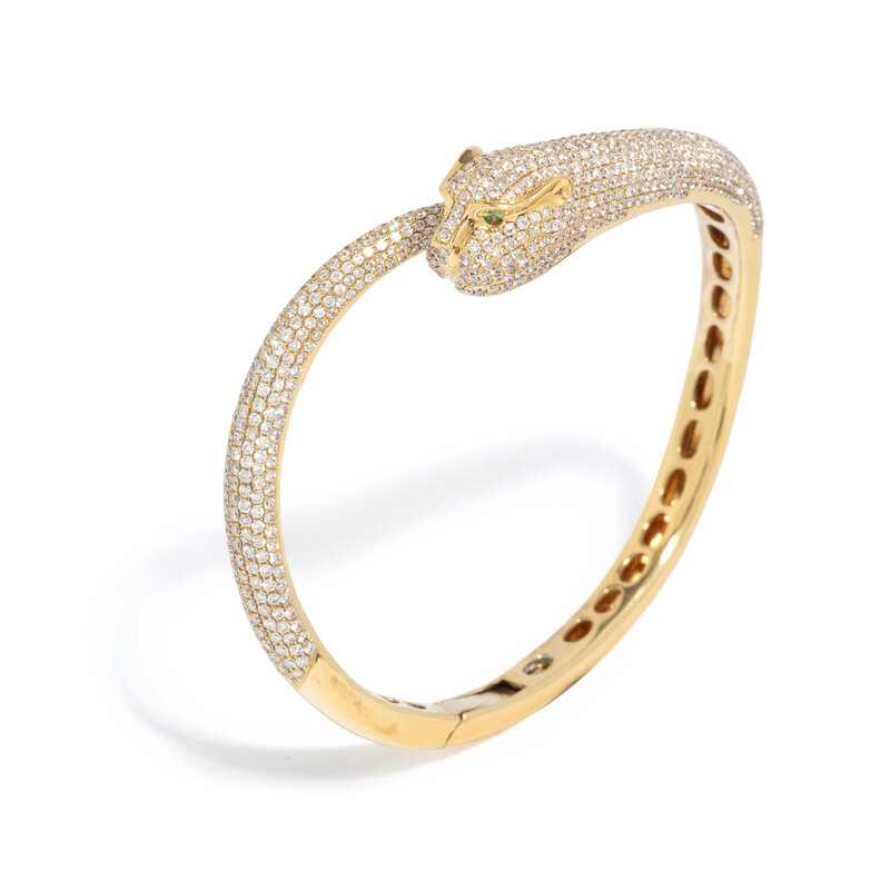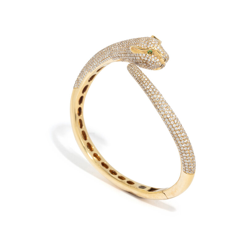 ANITA KO, DIAMOND AND TSAVORITE GARNET PANTHER BANGLE BRACELET