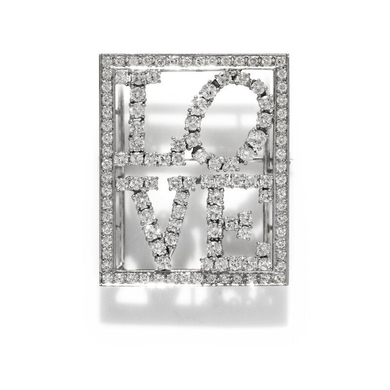 PLATINUM AND DIAMOND 'LOVE' PIN