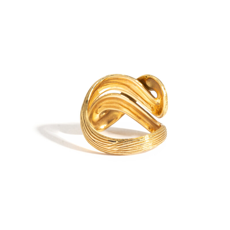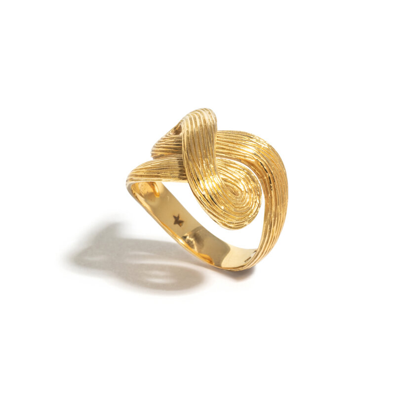 Textured infinity swirl. 18 karat gold. Ring Size 7.