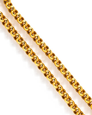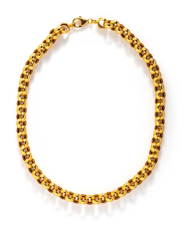 Wide lightweight circular links each measuring approximately 10.00 mm wide, with lobster clasp. 17 1/8 inches long.