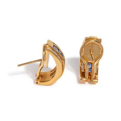 YELLOW GOLD, SAPPHIRE AND DIAMOND CLIP EARRINGS
