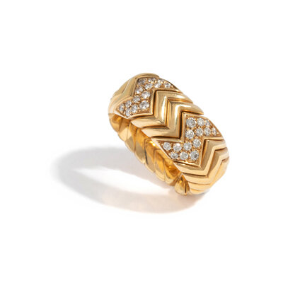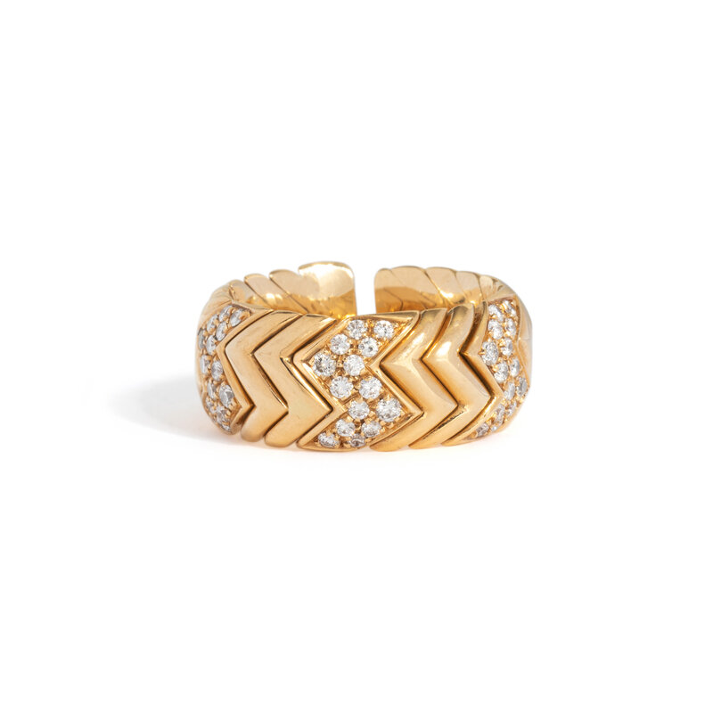 BULGARI, YELLOW GOLD AND DIAMOND 'SPIGA' RING