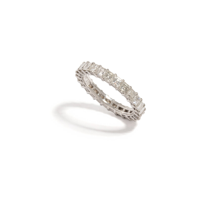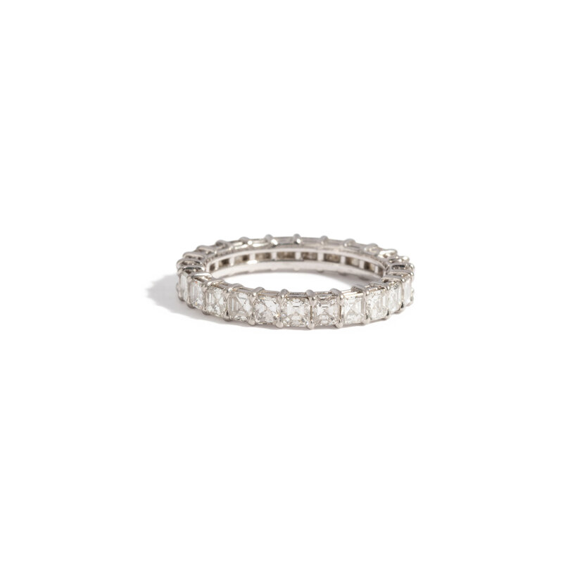 Square emerald cut diamonds weighing approximately 2.50 carats total. Platinum. Ring size 6 1/2.