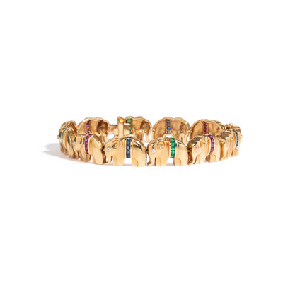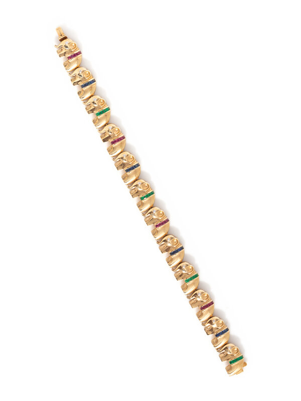 YELLOW GOLD, MULTIGEM AND DIAMOND ELEPHANT BRACELET