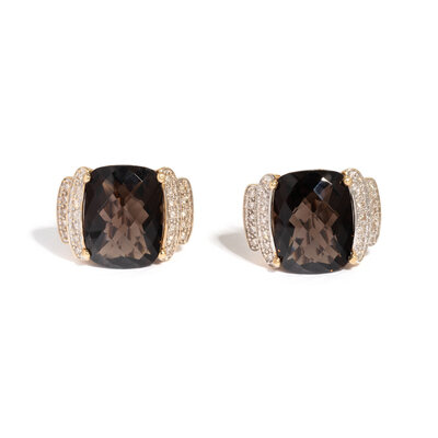 SMOKEY QUARTZ AND DIAMOND CLIP EARRINGS