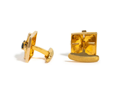 YELLOW GOLD, DIAMOND AND SAPPHIRE CUFFLINKS