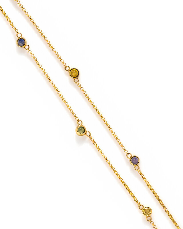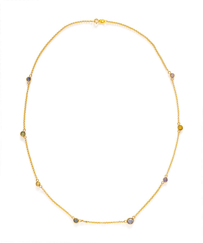 YELLOW GOLD AND MULTICOLOR SAPPHIRE STATION NECKLACE
