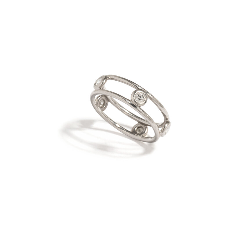 Round brilliant cut diamonds. Platinum. Ring size 7 1/4.