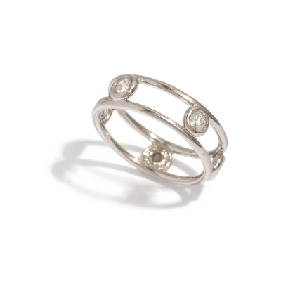 Round brilliant cut diamonds. Platinum. Ring size 4 1/4.