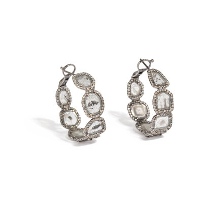 WHITE GOLD AND DIAMOND HOOP EARRINGS