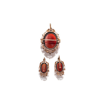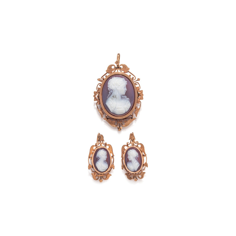 VICTORIAN, ROSE GOLD AND AGATE CAMEO DEMI-PARURE