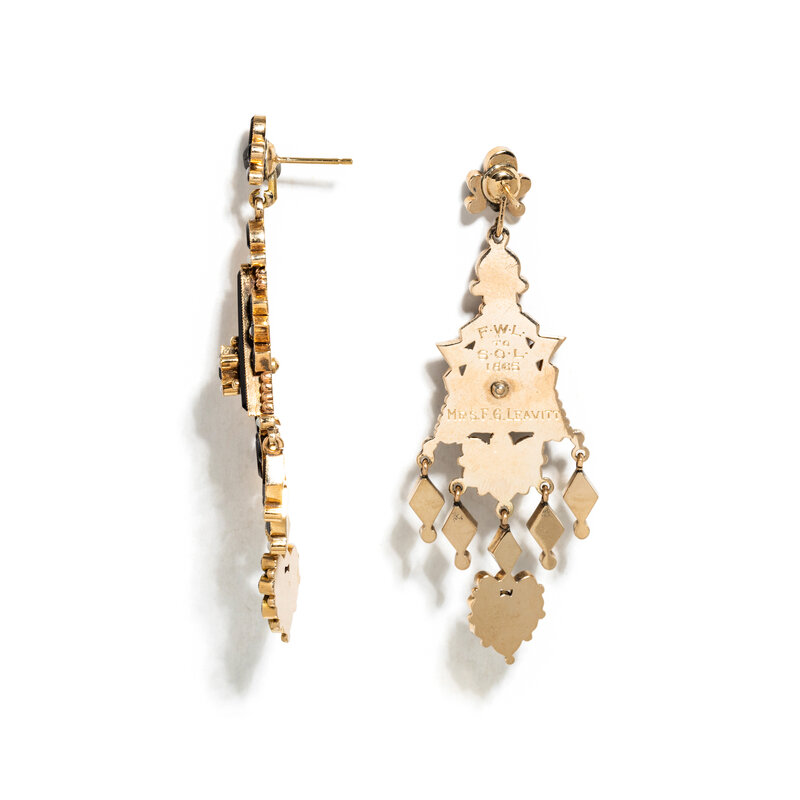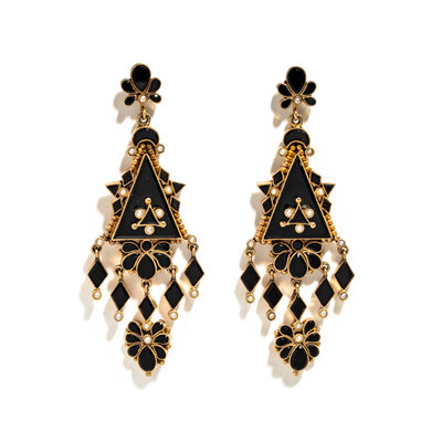 VICTORIAN, ONYX AND SEED PEARL EARRINGS