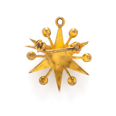 Detachable pendant also functioning as a brooch. Yellow gold. Necklace: 15 inches long. Brooch/Pendant: 7/8 inches long.