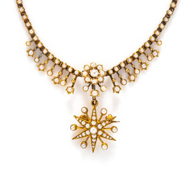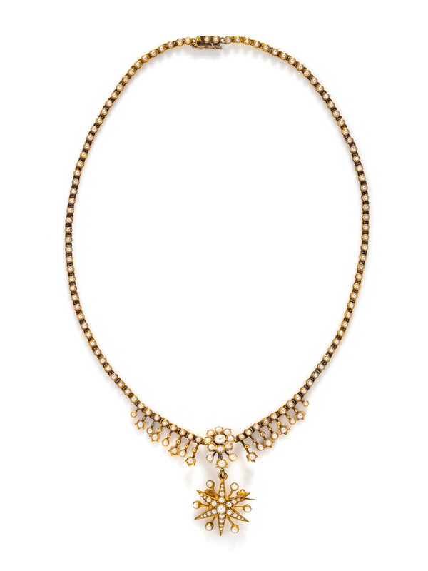 VICTORIAN, YELLOW GOLD AND SEED PEARL NECKLACE