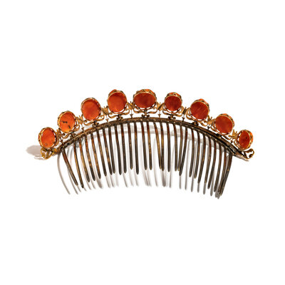 FRENCH, YELLOW GOLD, GILT METAL AND CORAL CAMEO TIARA