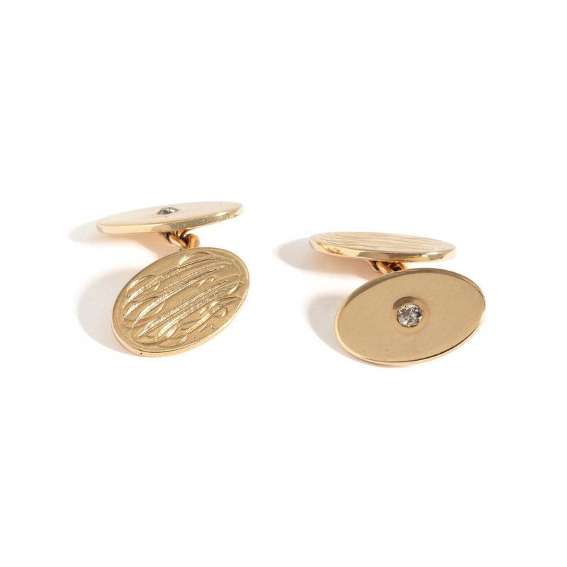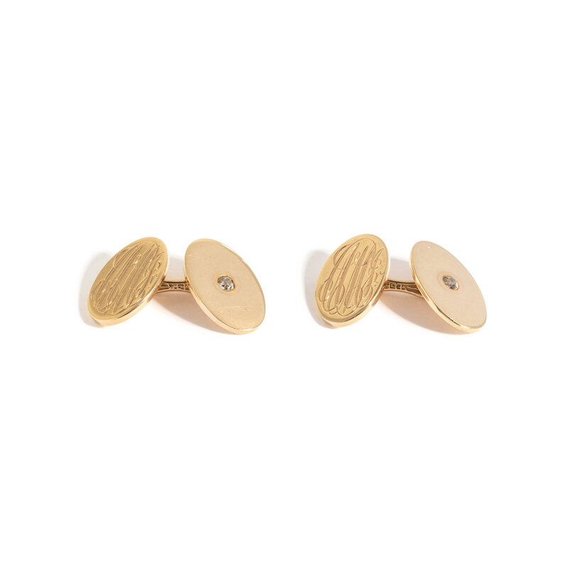 YELLOW GOLD AND DIAMOND MONOGRAM CUFFLINKS