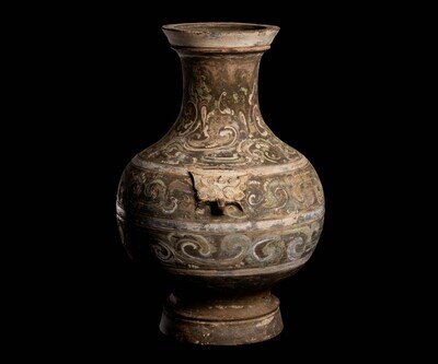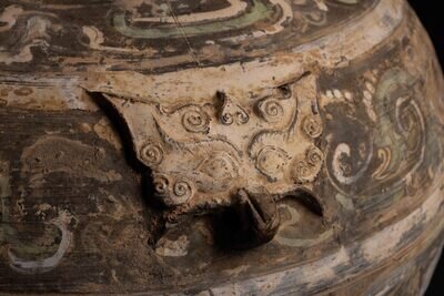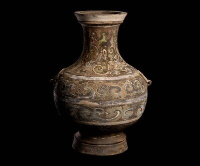 A Chinese Polychrome Painted Grey Pottery Hu, Han Dynasty