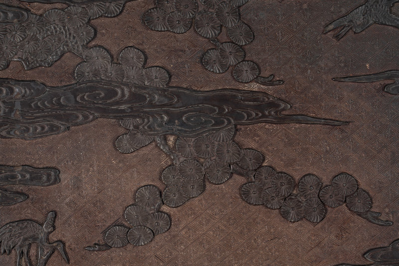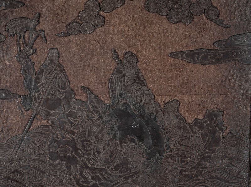 A Chinese Carved Lacquer 'Immortals' Wall Panel
