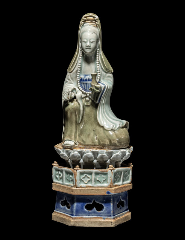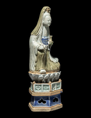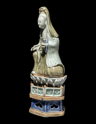 A Chinese Celadon and Underglazed Blue Porcelain Figure of Guanyin