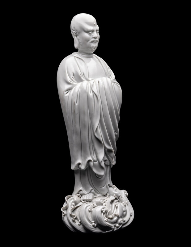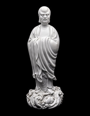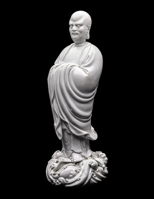 A Chinese Blanc-de-Chine Glazed Porcelain Figure of Damo