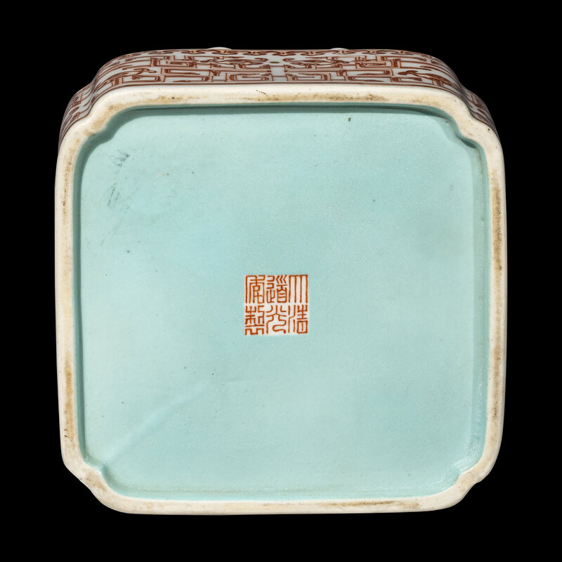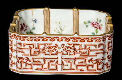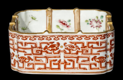 A Chinese Gilt, Famille Rose and Iron-Red Decorated Porcelain Square Brush Washer