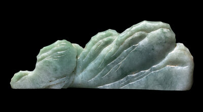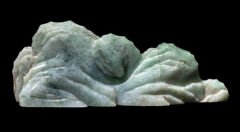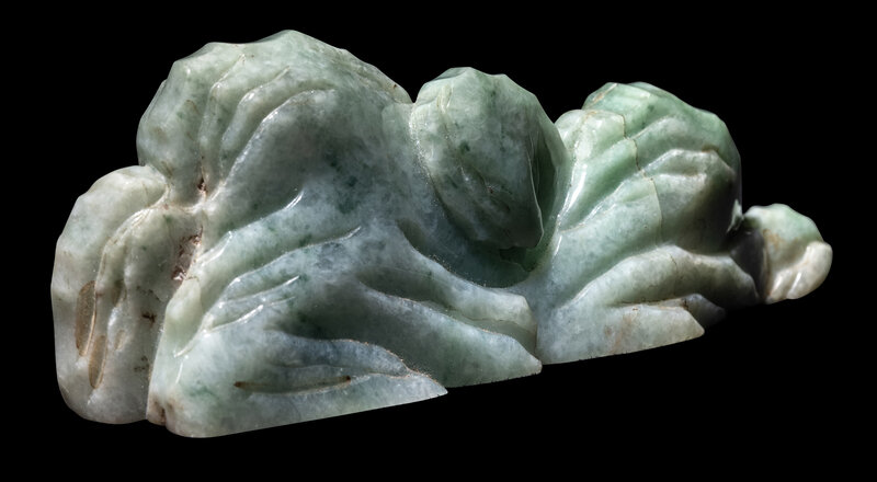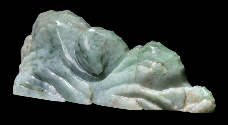 A Chinese Apple Green and Pale Celadon Jadeite Mountain-Form Brush Rest, Bijia