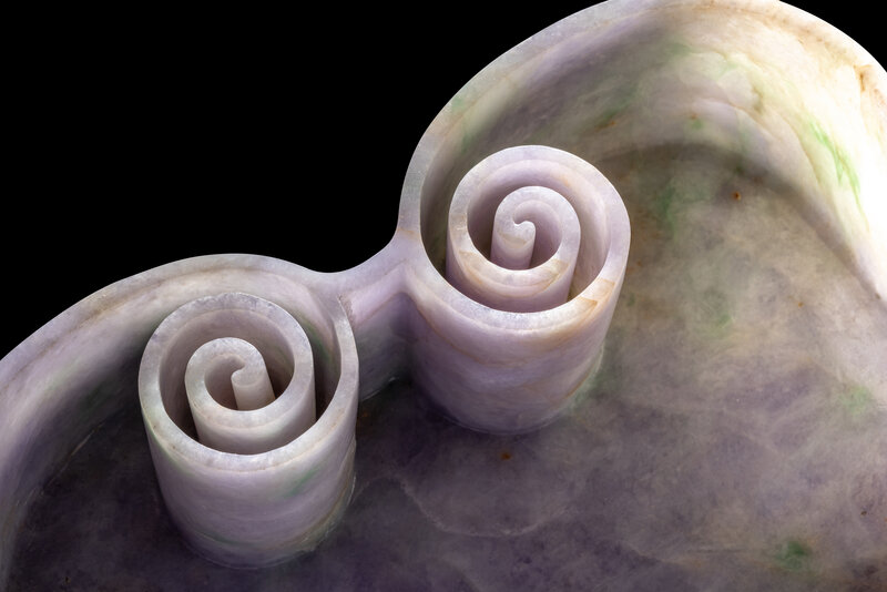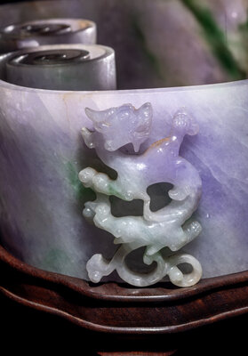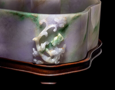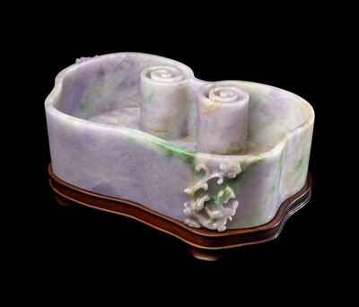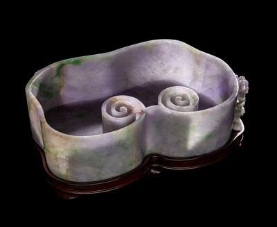 A Large Chinese Lavender and Apple Green Jadeite Ruyi-Form Brush Washer