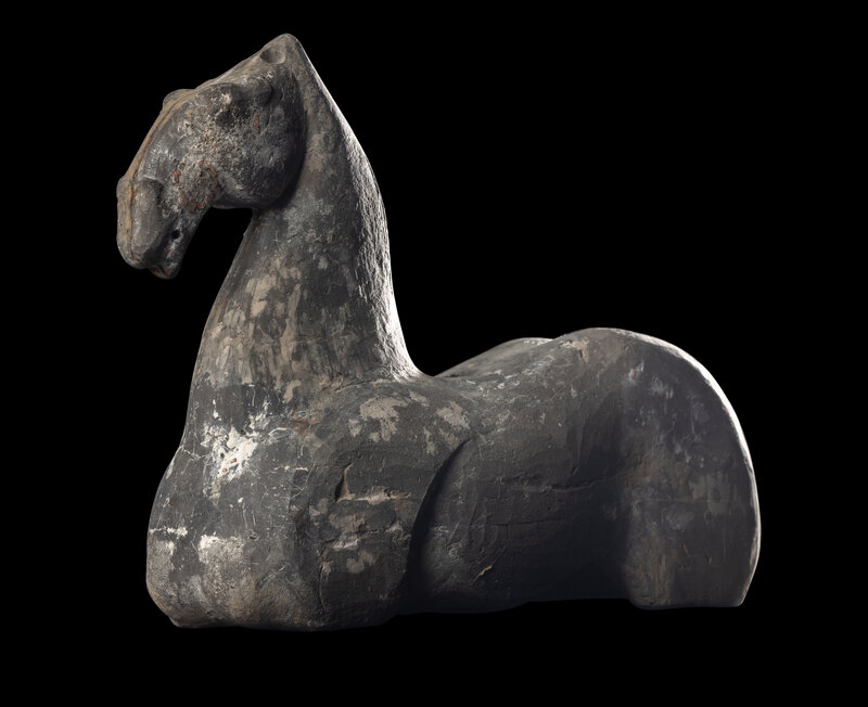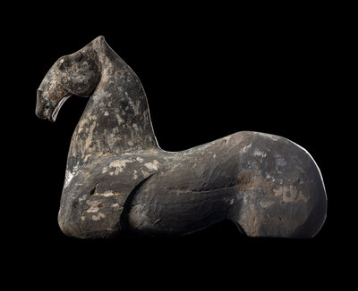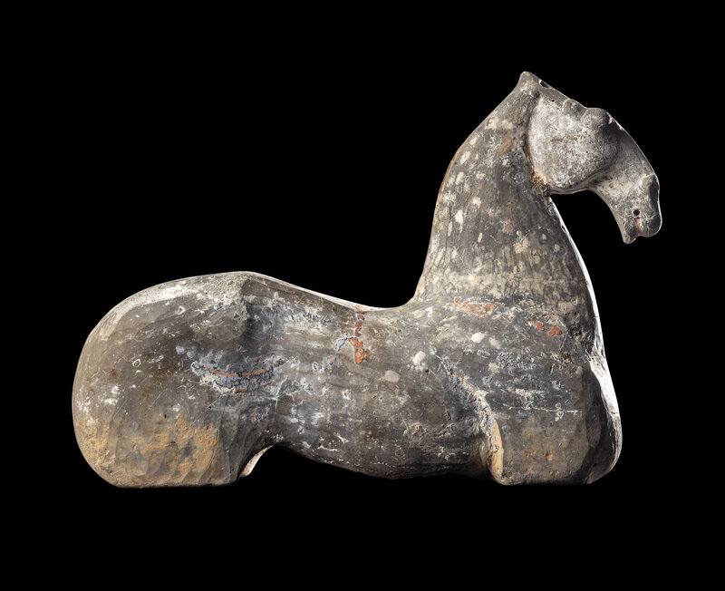 A Chinese Grey Pottery Figure of a Recumbent Horse