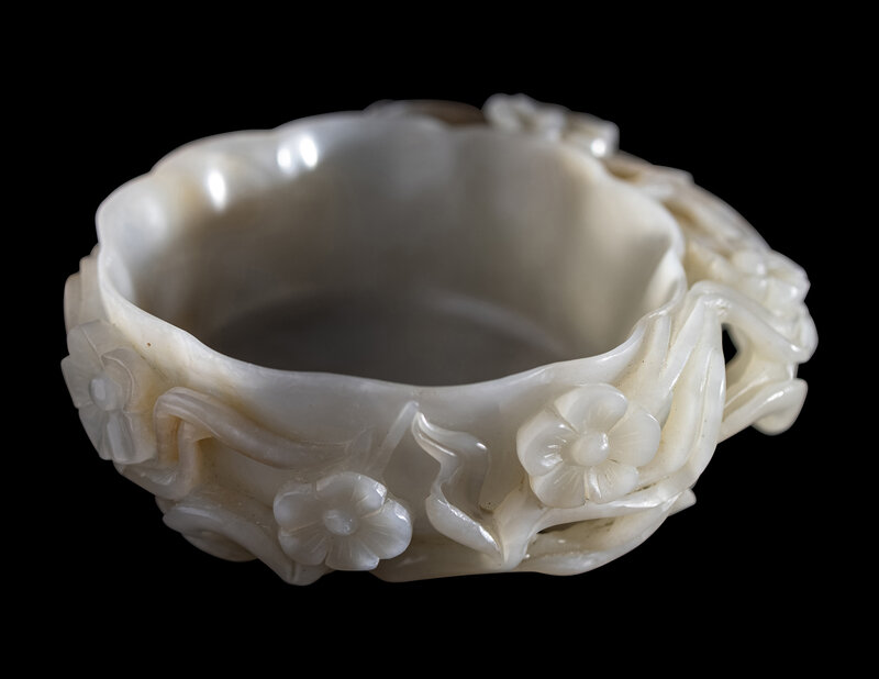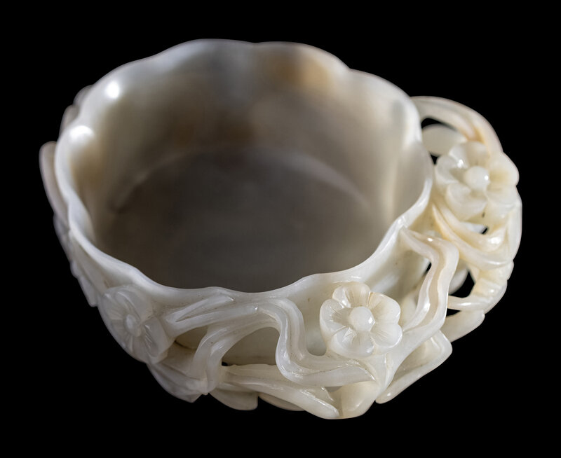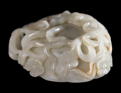 A Chinese Carved Jade 'Prunus' Brush Washer