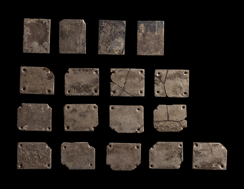 A Set of 17 Chinese Calcified Jade Plaques