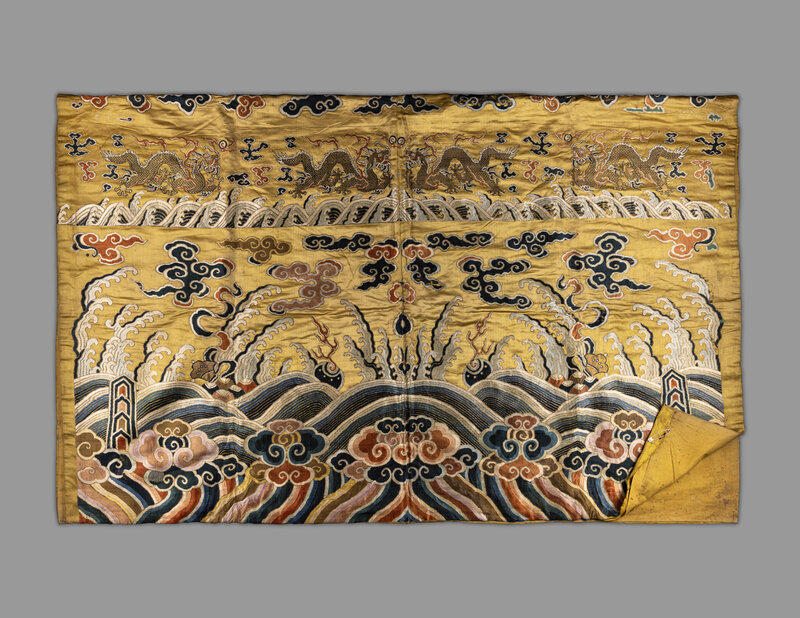 清中期 巨幅明黃緞織錦龍袍料