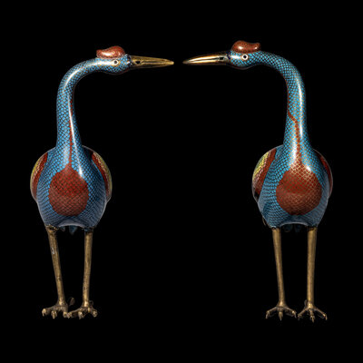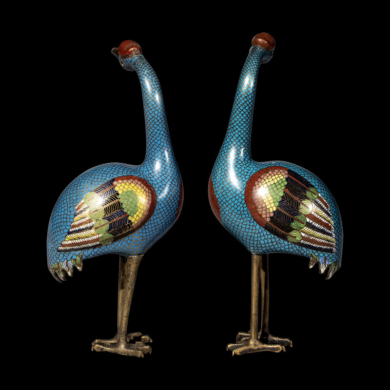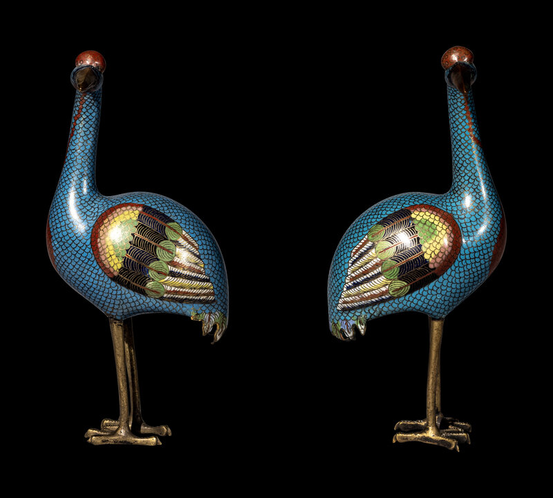 清中期 掐絲琺琅仙鶴一對