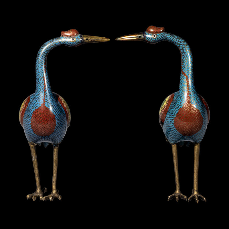 A Pair of Chinese Cloisonné Enamel Figures of Cranes