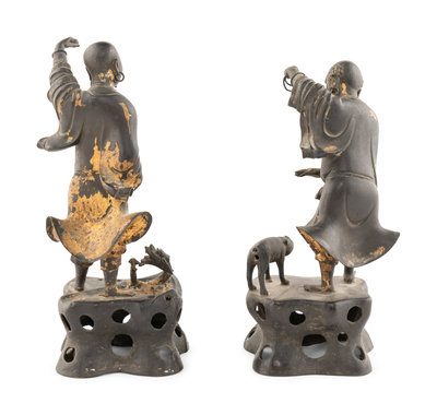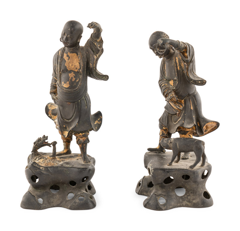 A Pair of Chinese Parcel-Gilt Bronze Figures of Luohan