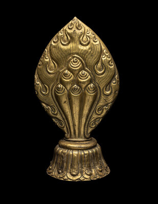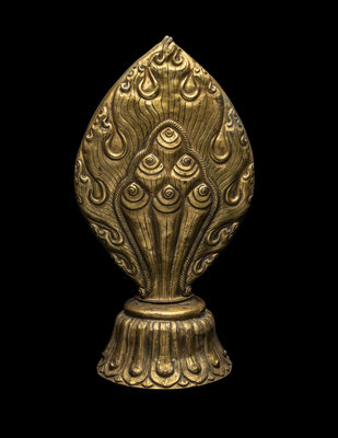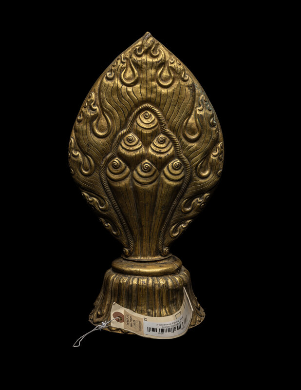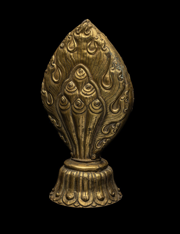 A Nepalese Repoussé Gilt Bronze Flaming Jewel Altar Piece
